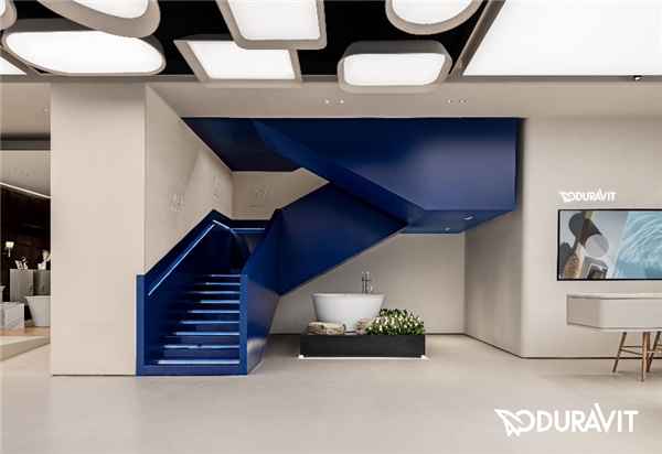 旗艦店的“幕后”部分講述了Duravit二百多年來的品牌沉淀。從核心專利技術(shù)到品牌歷史,沿著品牌色的藍色階梯拾級而上,看到Duravit如何用“幕后”的堅持,成就“臺前”的卓越。